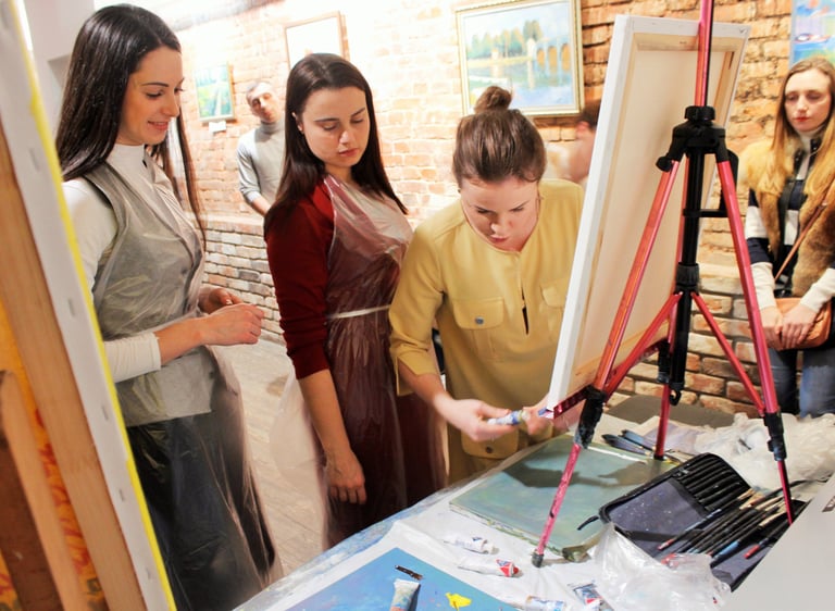 Результати гостей за 1 майстер-клас, олійний живопис, галерея "ВІЗ", Дніпро, 2015.