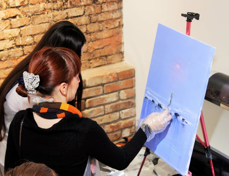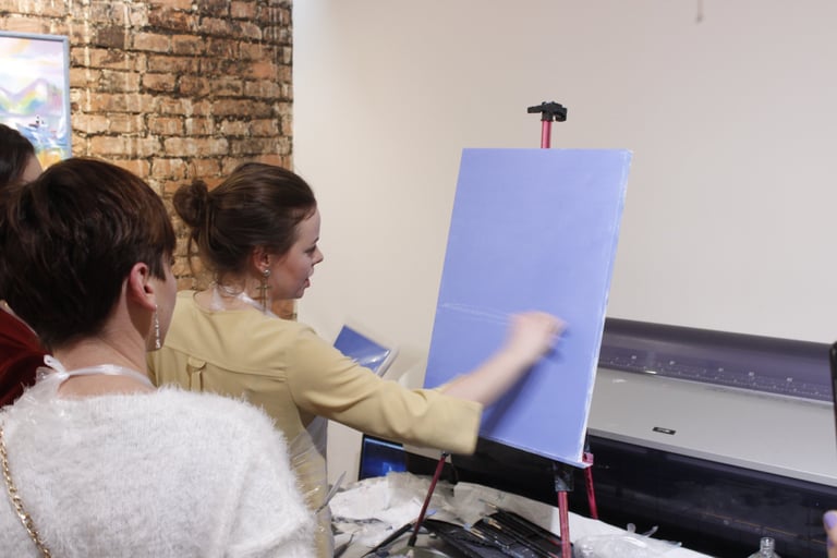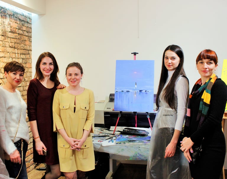 Результати гостей за 1 майстер-клас, олійний живопис, галерея "ВІЗ", Дніпро, 2015.